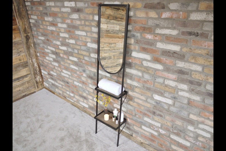 Black Industrial Metal Freestanding Mirror Curved Bathroom Etsy