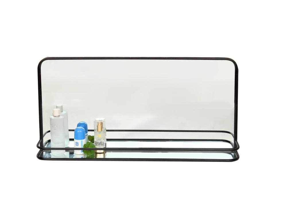 Black Metal Industrial Style Wall Mirror Shelf Bathroom Bedroom