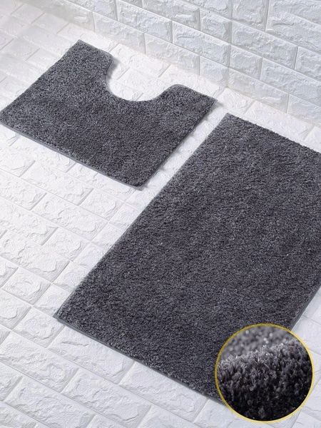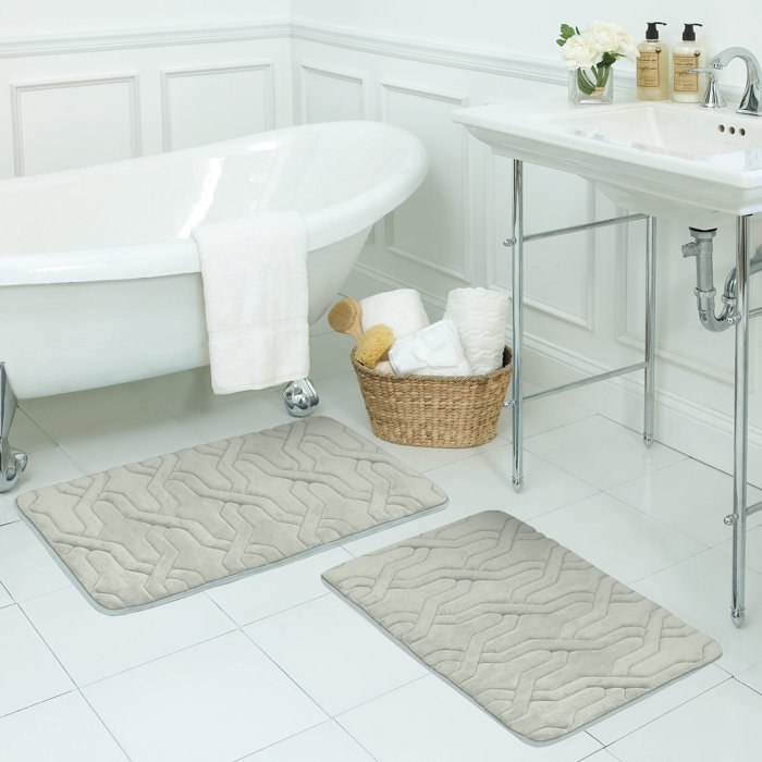 2 Piece Bath Mat Set Memory Faom Plain Grey Bath Mats Home