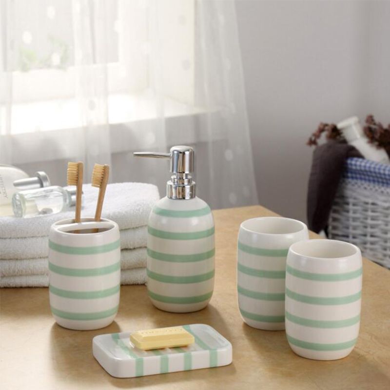 Buy 4 Pcs Bath Set Elegant Blue Lining Ceramic Soap Dispenser
