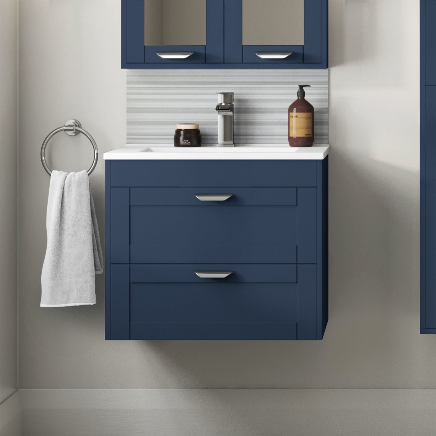 600mm Wall Hung 2 Drawer Vanity Unit With Basin Indigo Blue