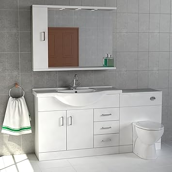 Monza Modern White Sink Vanity Unit Toilet Stone Grey Double