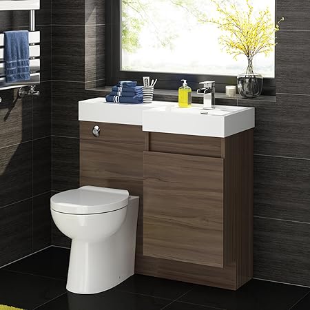 900mm Walnut Vanity Unit Modern Toilet Bathroom Sink Right Storage