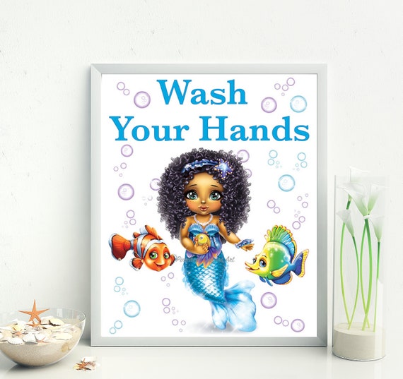 Mermaid Bathroom Wall Decor African American Girl Wall Art Etsy