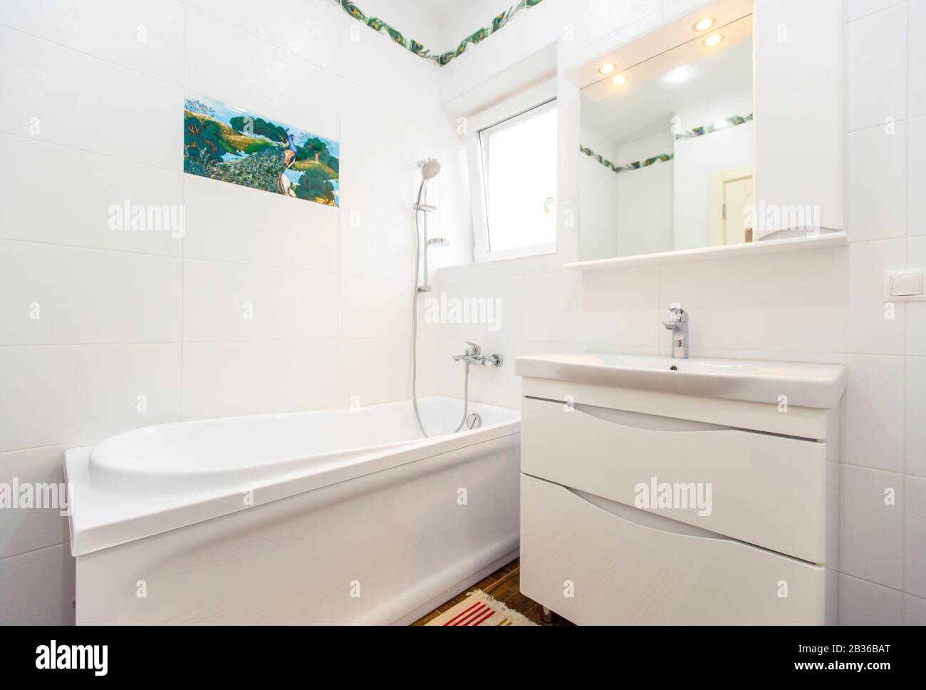 White Tile Bathroom Interior Tub And Sink Stock Illustration