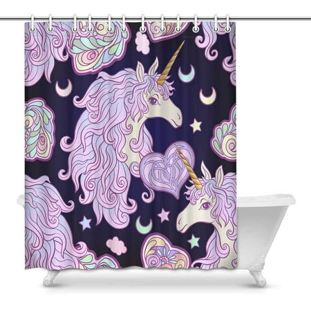 Pop Unicorn Purple Bathroom Decor Shower Curtain Set 60x72 Inch
